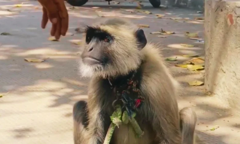 अलीगढ़ कॉलेज में बंदरों से निपटने का अनोखा तरीका: ‘गोलू’ लंगूर बना गार्ड, 12 हजार सैलरी